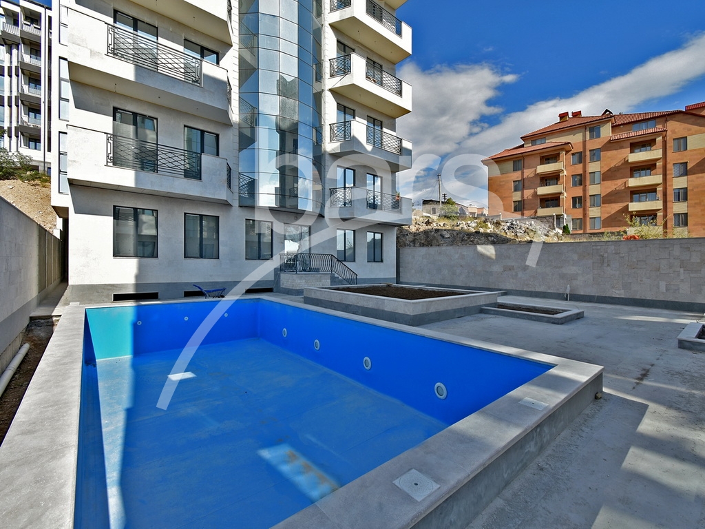 This modern residential building is built with monolithic reinforced concrete structures and is designed to withstand an earthquake of magnitude 9+ on Richter scale. Only construction material of high quality is being used. External wall cladding is going to be covered with white travertine.  The building will be enhanced with geothermal heating and cooling system of Mammoth brand that will give you the possibility of savings in the future. The building is also enhanced with heat and sound insulation. The windows are produced with use of German Schuco profiles and UK Pilkington brand three-layered glasses  which have 6 mm thickness. According to the project, the premises of common use are designed to have marble tiling and all apartments with front balconies. There is underground parking available.