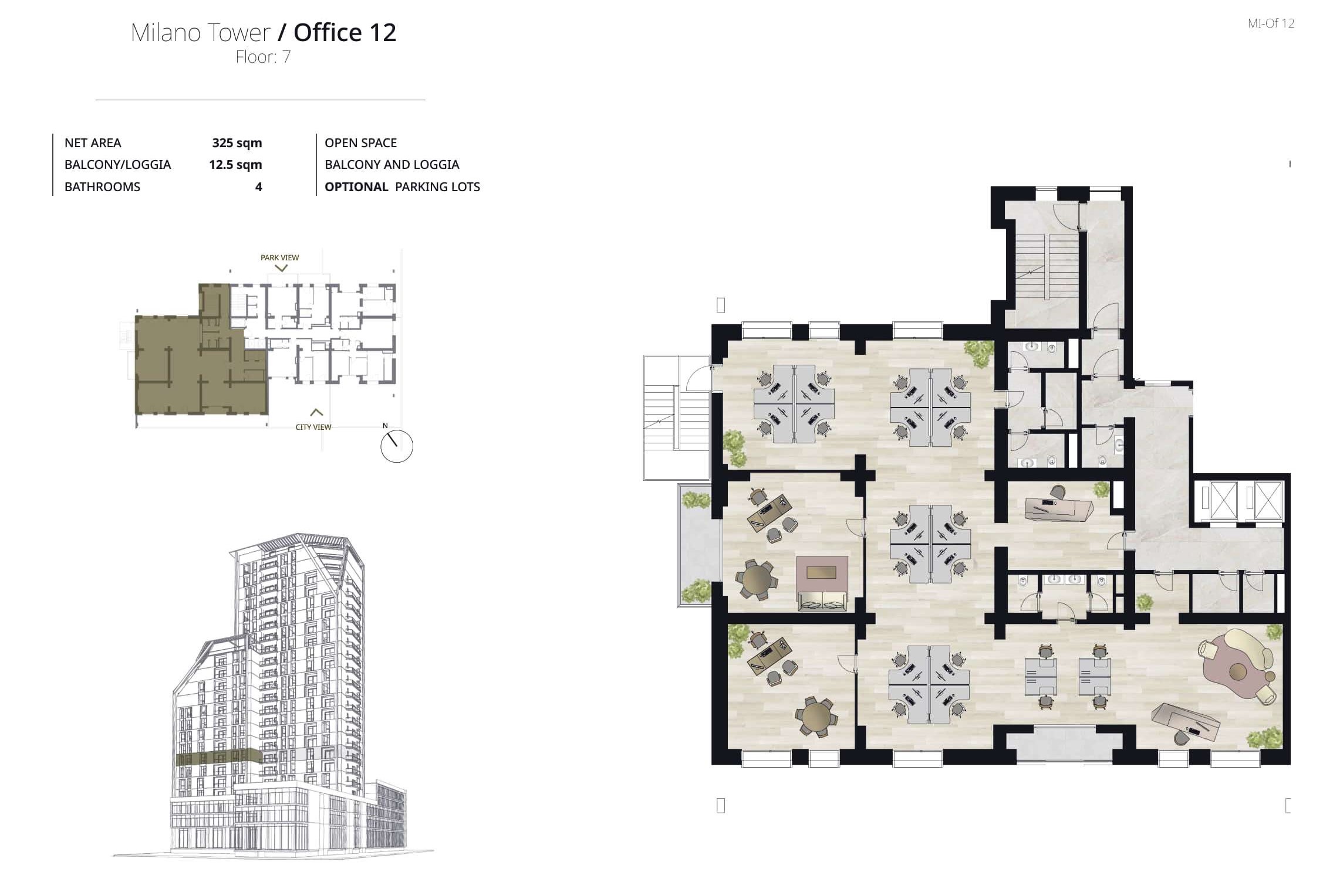 Multifunctional complex comprises apartments, commercial premises, green areas that located in the city center. The architectural solutions of the complex based on classic and modern Italian style, which provides a unique design, high quality and high level of comfort.