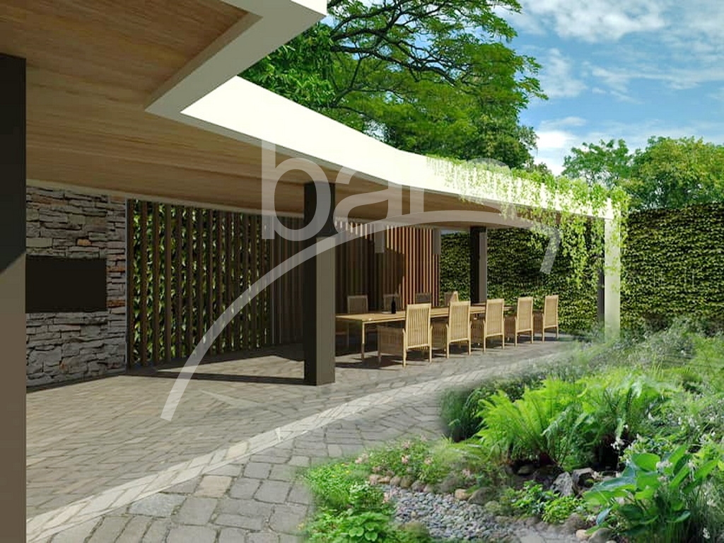 Բնակելի շենքը կունենա պարսպապատ բակային տարածք ամառային խոհանոցով և մանղալով: